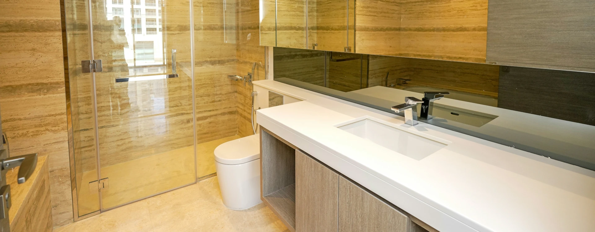 Explore real bathrooms transformed by Elite Cabinetry & Granite. See how smart layouts, custom vanities, tile and stone, updated lighting, and water-efficient fixtures turn outdated spaces into bright, functional rooms.